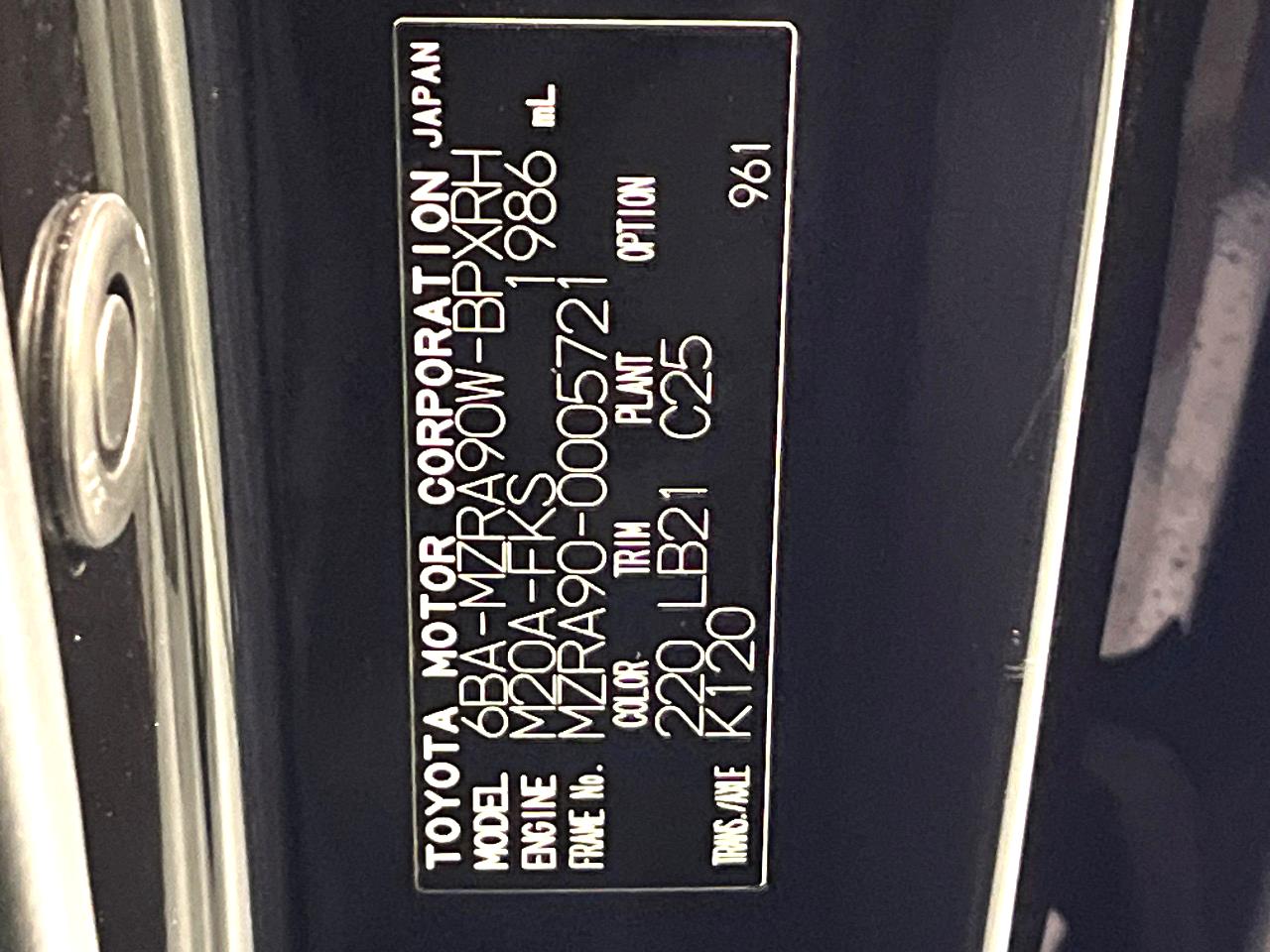 | Chassis No | MZRA90-0005721 |