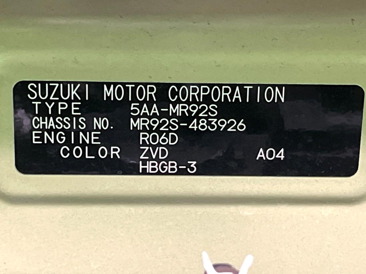 | Chassis No | MR92S-483926 |