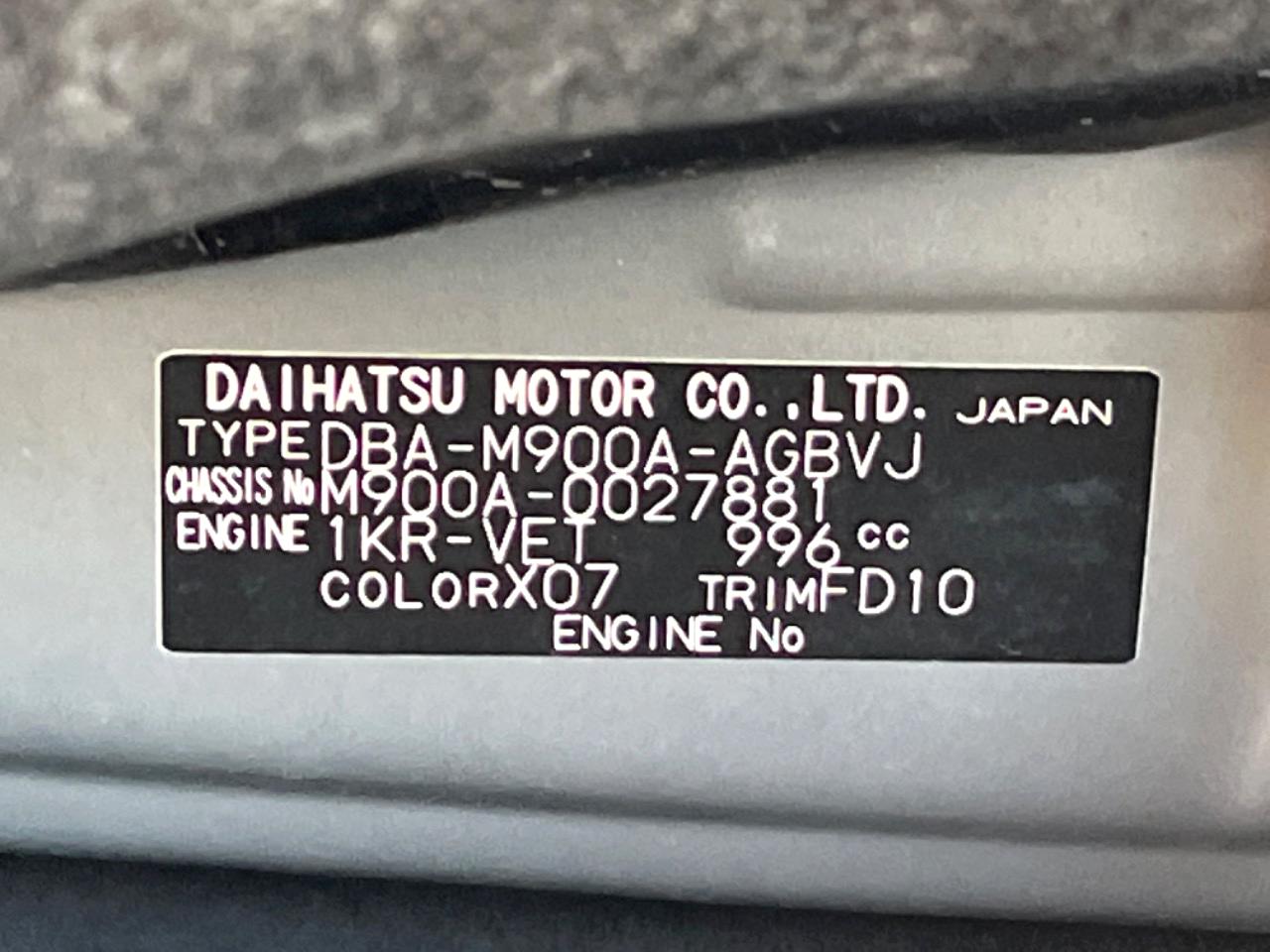 | Chassis No | M900A-0027881 |