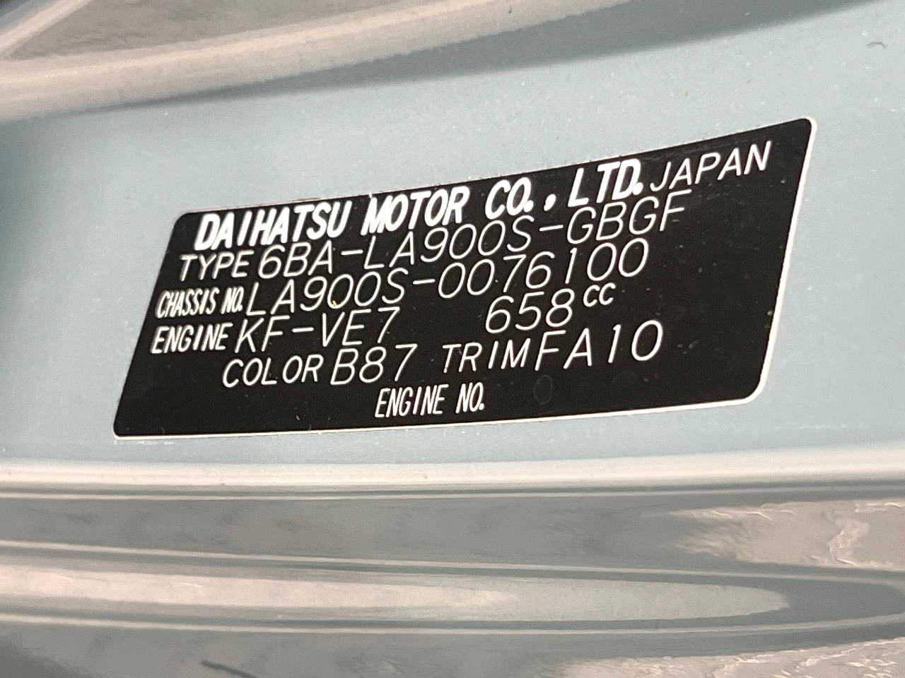 | Chassis No | LA900S-0076100 |
