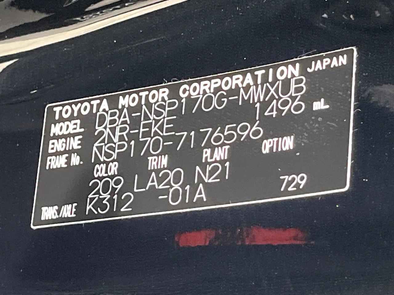 | Chassis No | NSP170-7176596 |