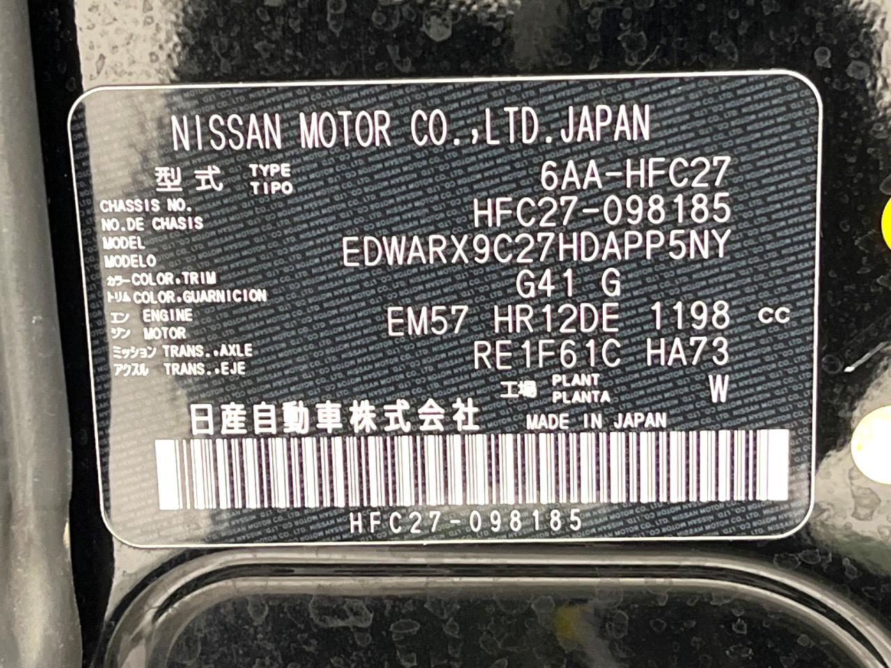 | Chassis No | HFC27-098185 |