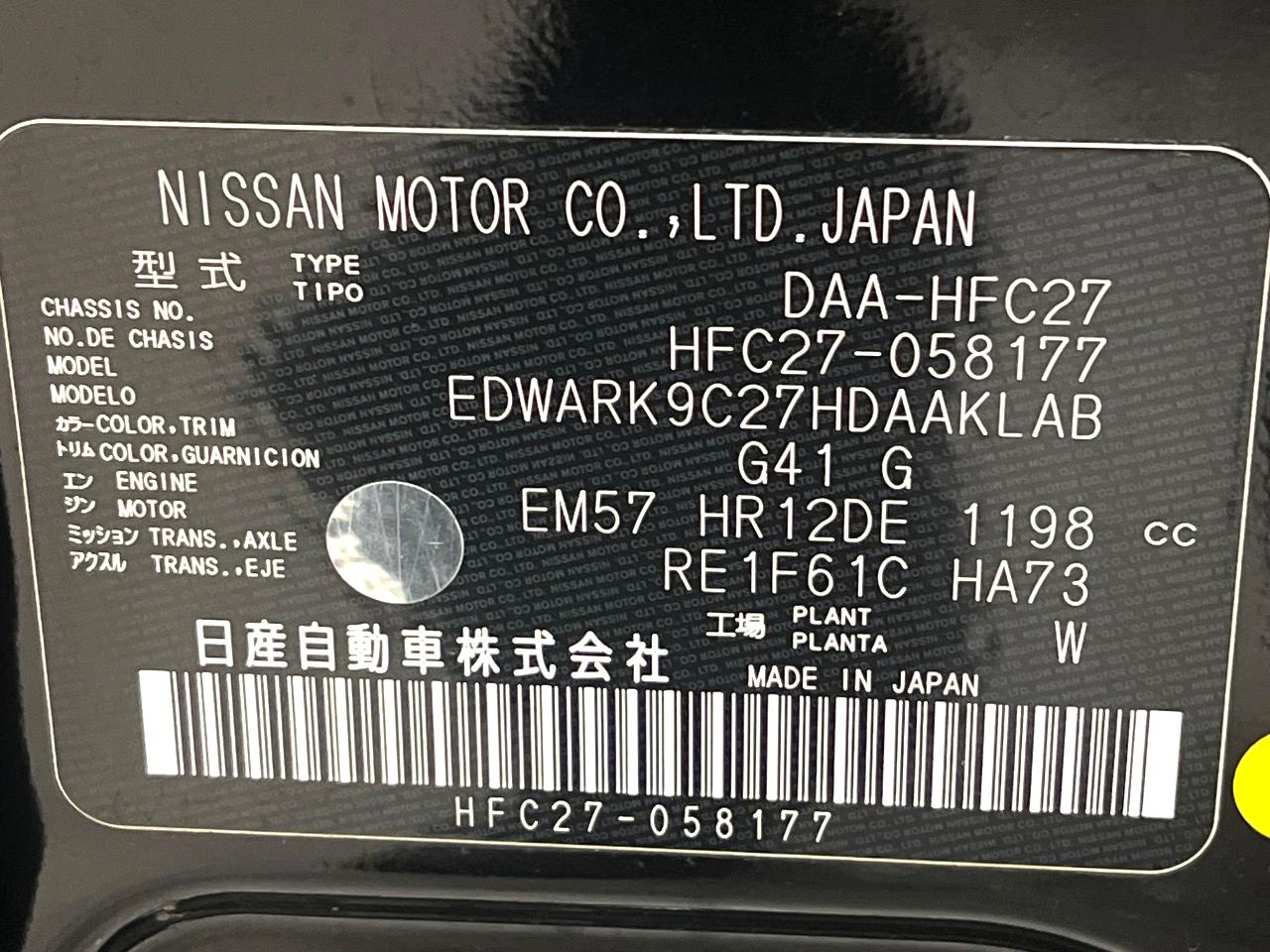 | Chassis No | HFC27-058177 |