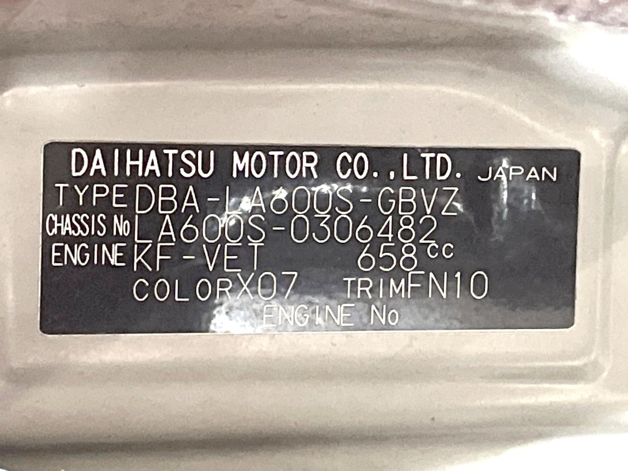 | Chassis No | LA600S-0306482 |