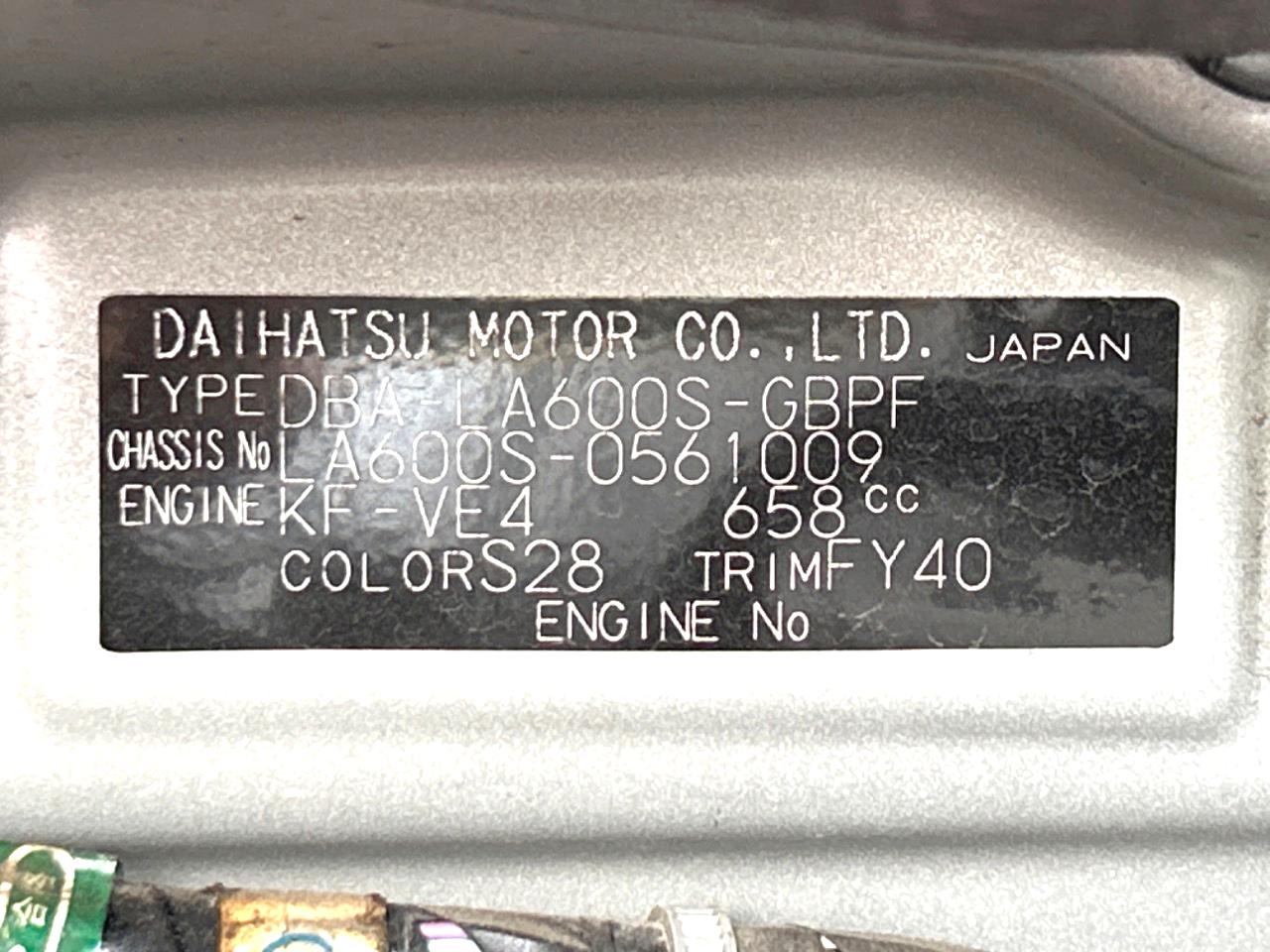 | Chassis No | LA600S-0561009 |