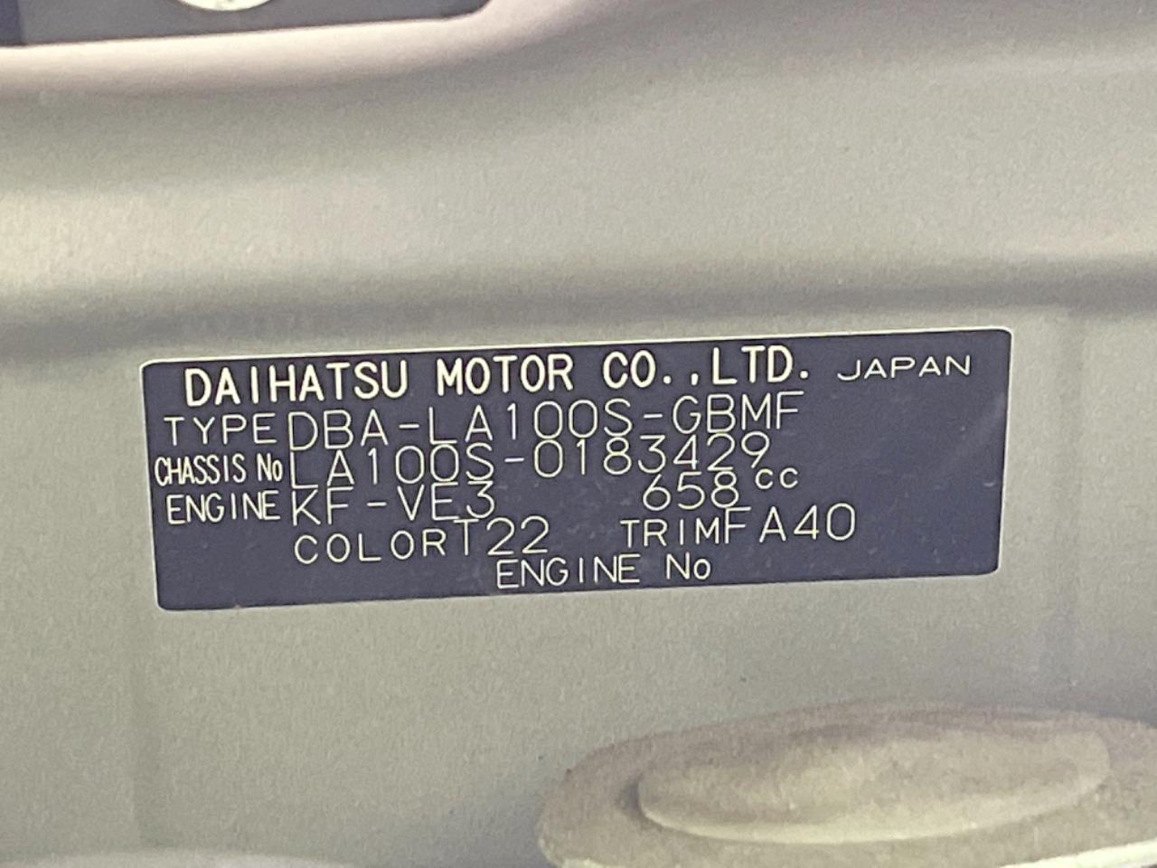 | Chassis No | LA100S-0183429 |
