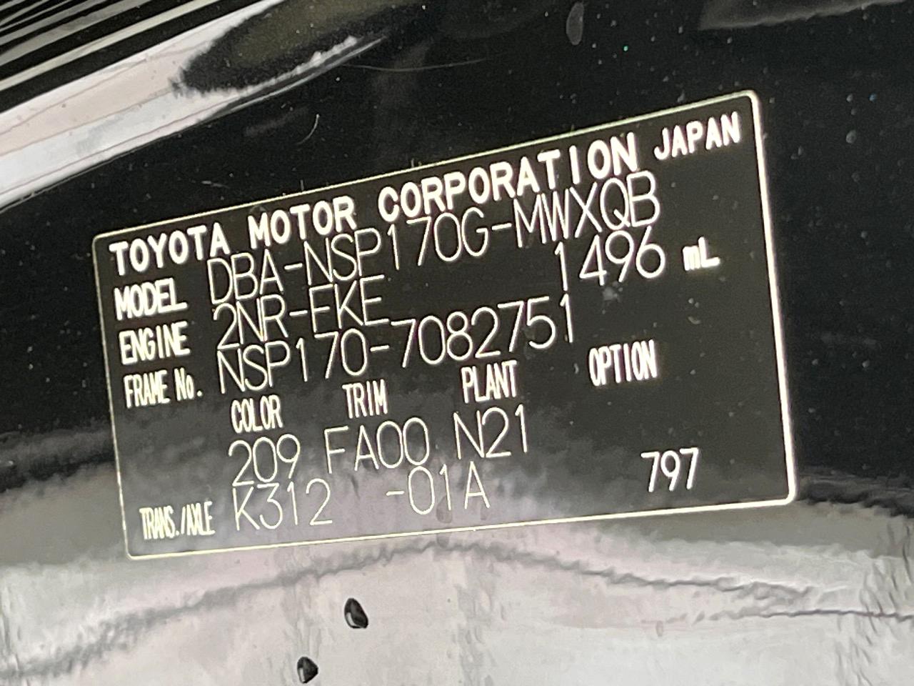 | Chassis No | NSP170-7082751 |