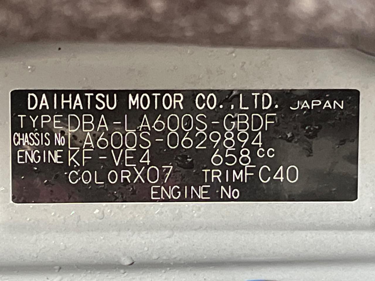 | Chassis No | LA600S-0629894 |