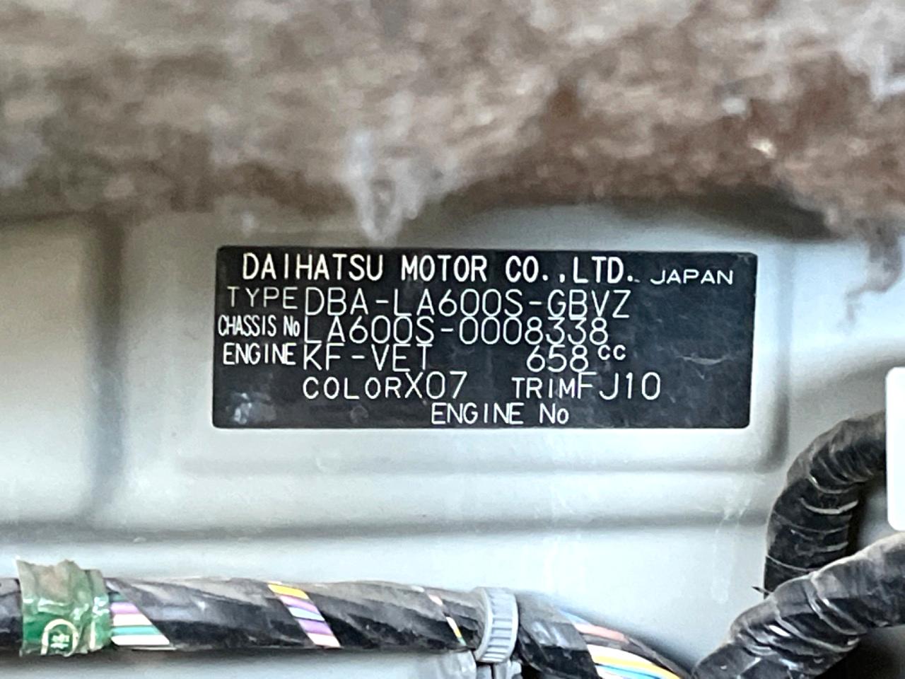 | Chassis No | LA600S-0008338 |