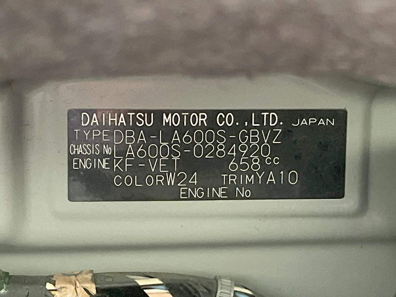 | Chassis No | LA600S-0284920 |