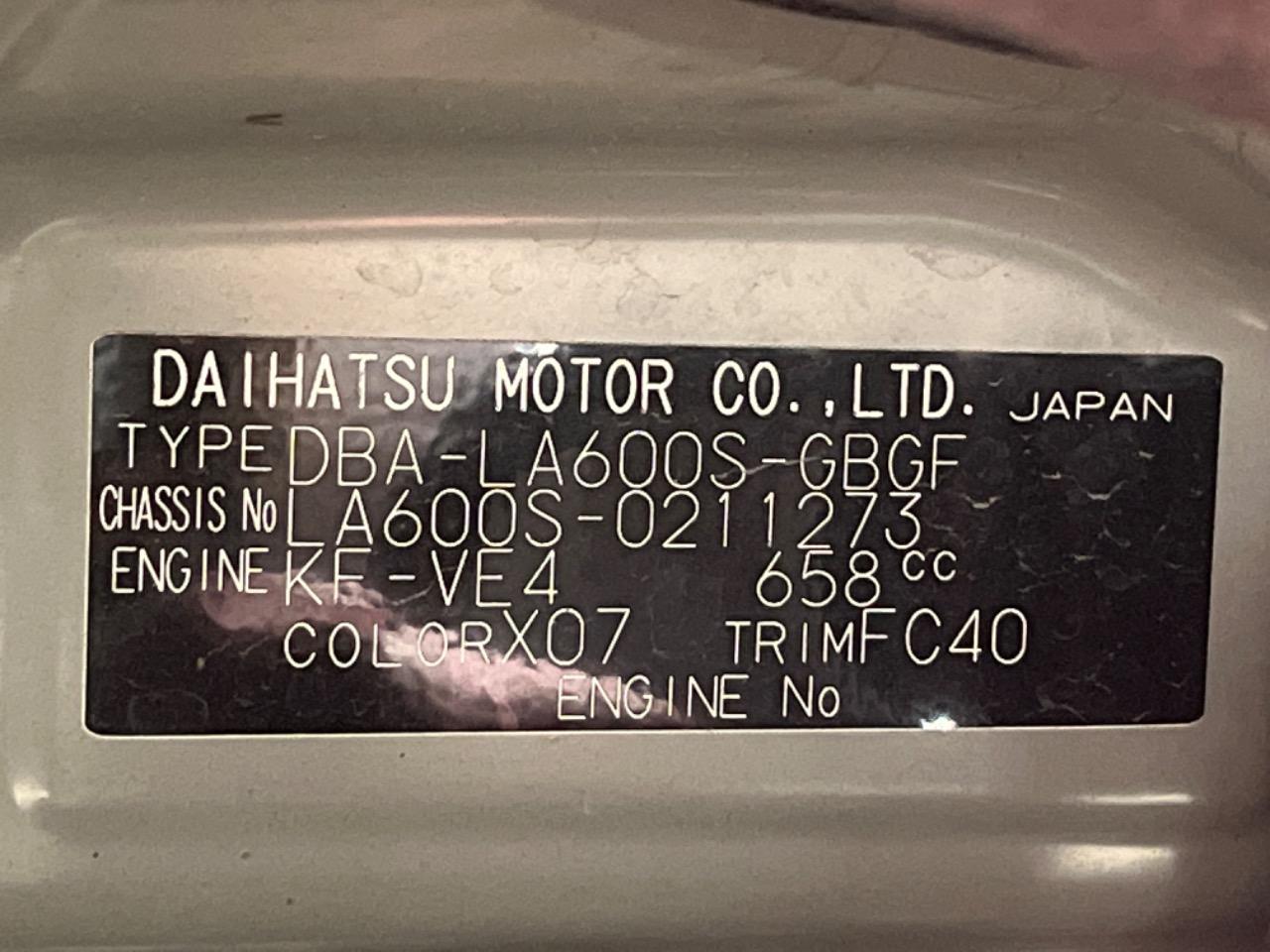 | Chassis No | LA600S-0211273 |
