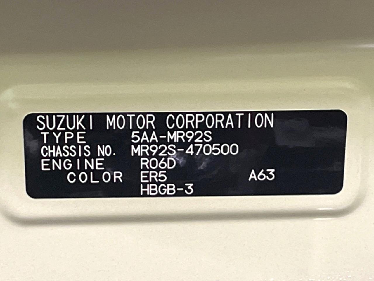 | Chassis No | MR92S-470500 |