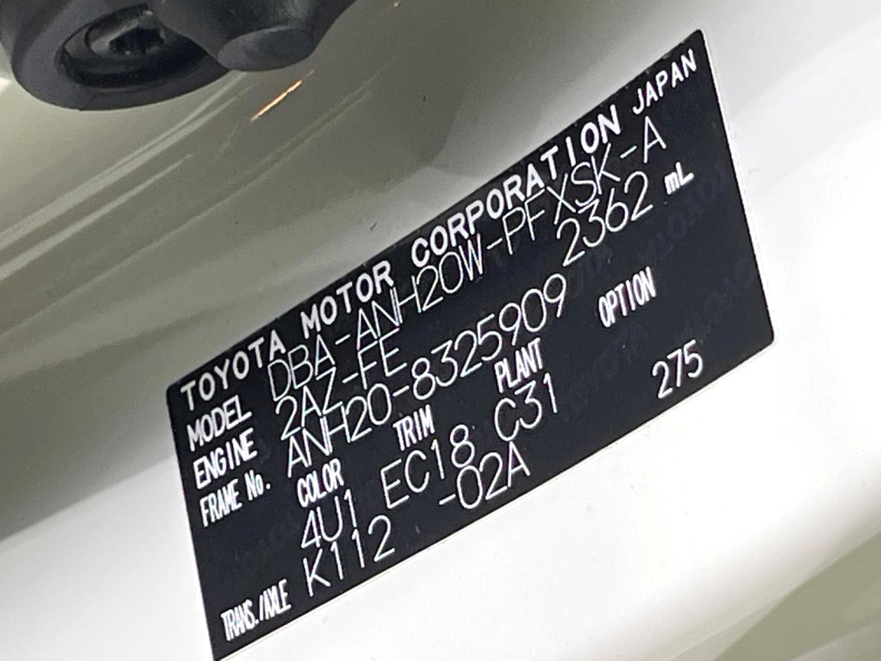 | Chassis No | ANH20-8325909 |