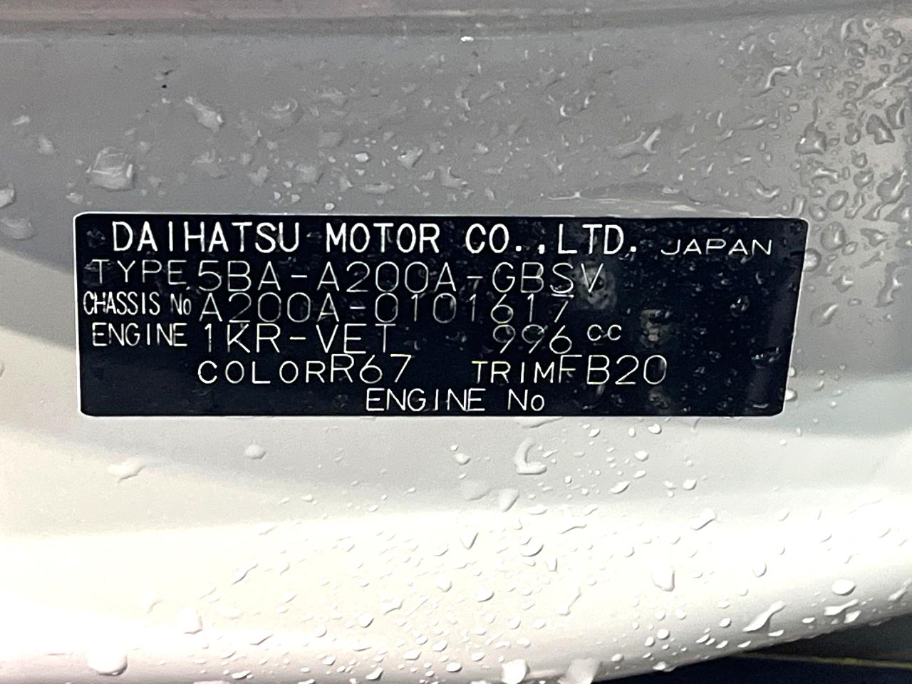| Chassis No | A200A-0101617 |
