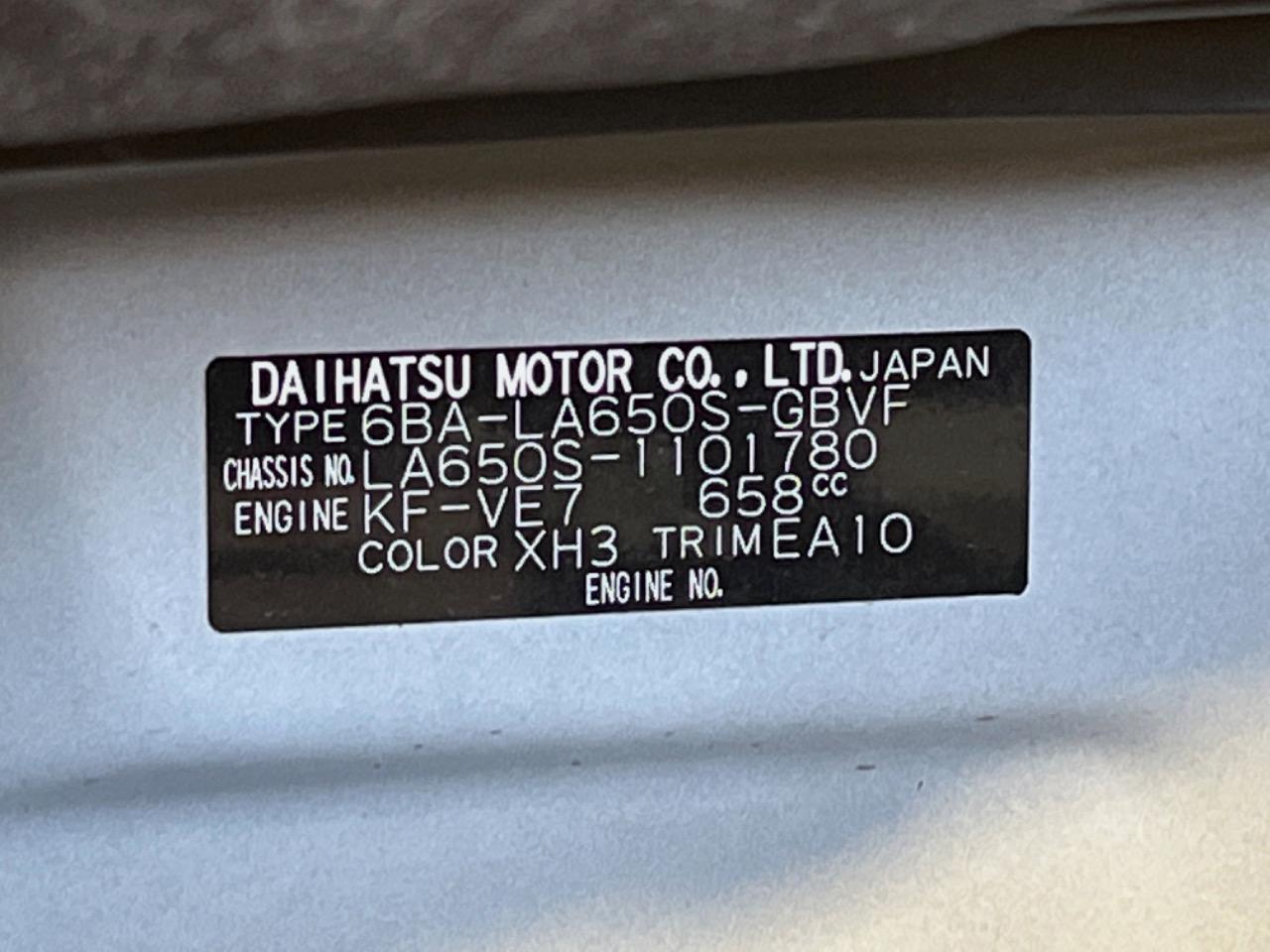 | Chassis No | LA650S-1101780 |