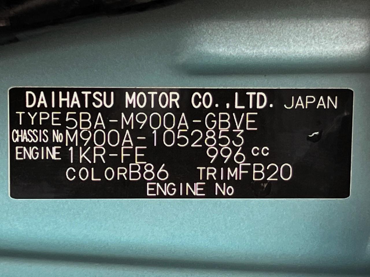 | Chassis No | M900A-1052853 |