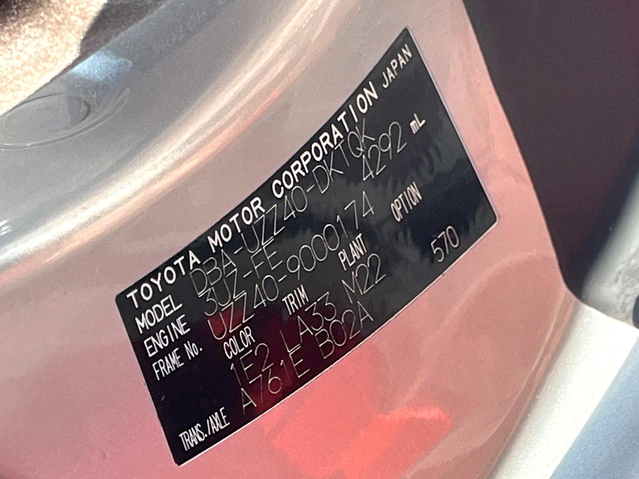 | Chassis No | UZZ40-9000174 |