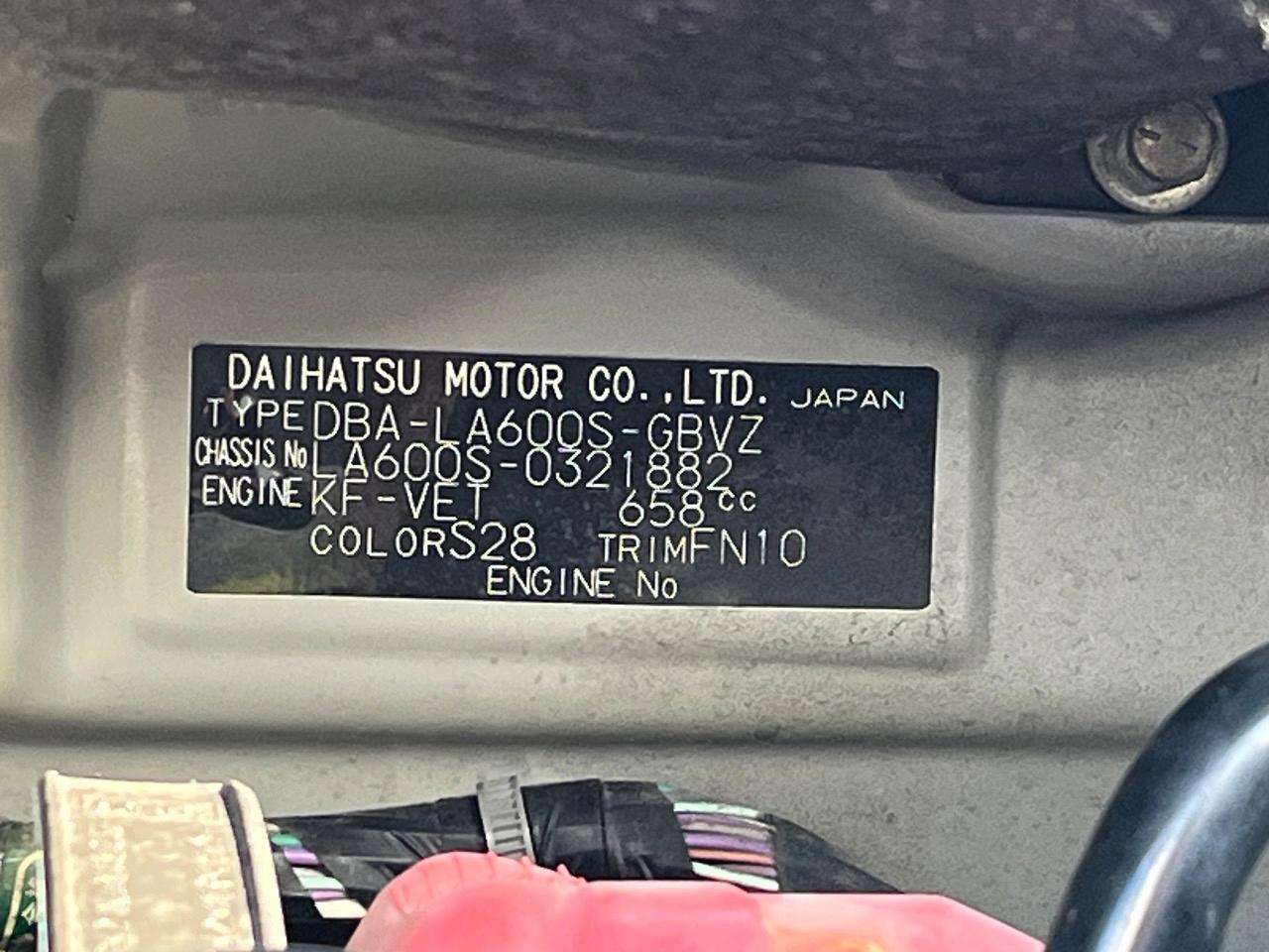 | Chassis No | LA600S-0321882 |