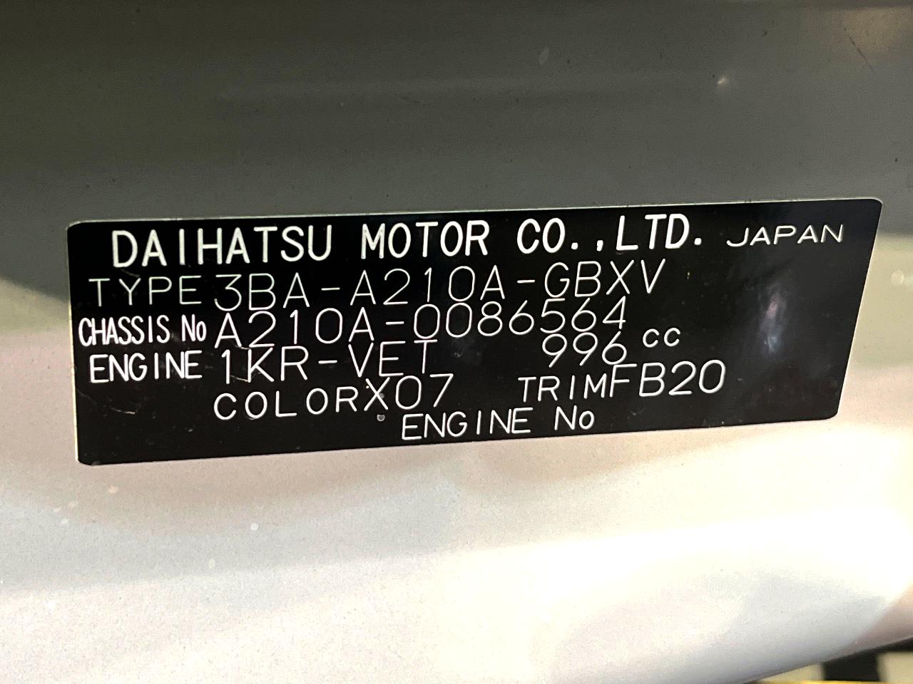 | Chassis No | A210A-0086564 |