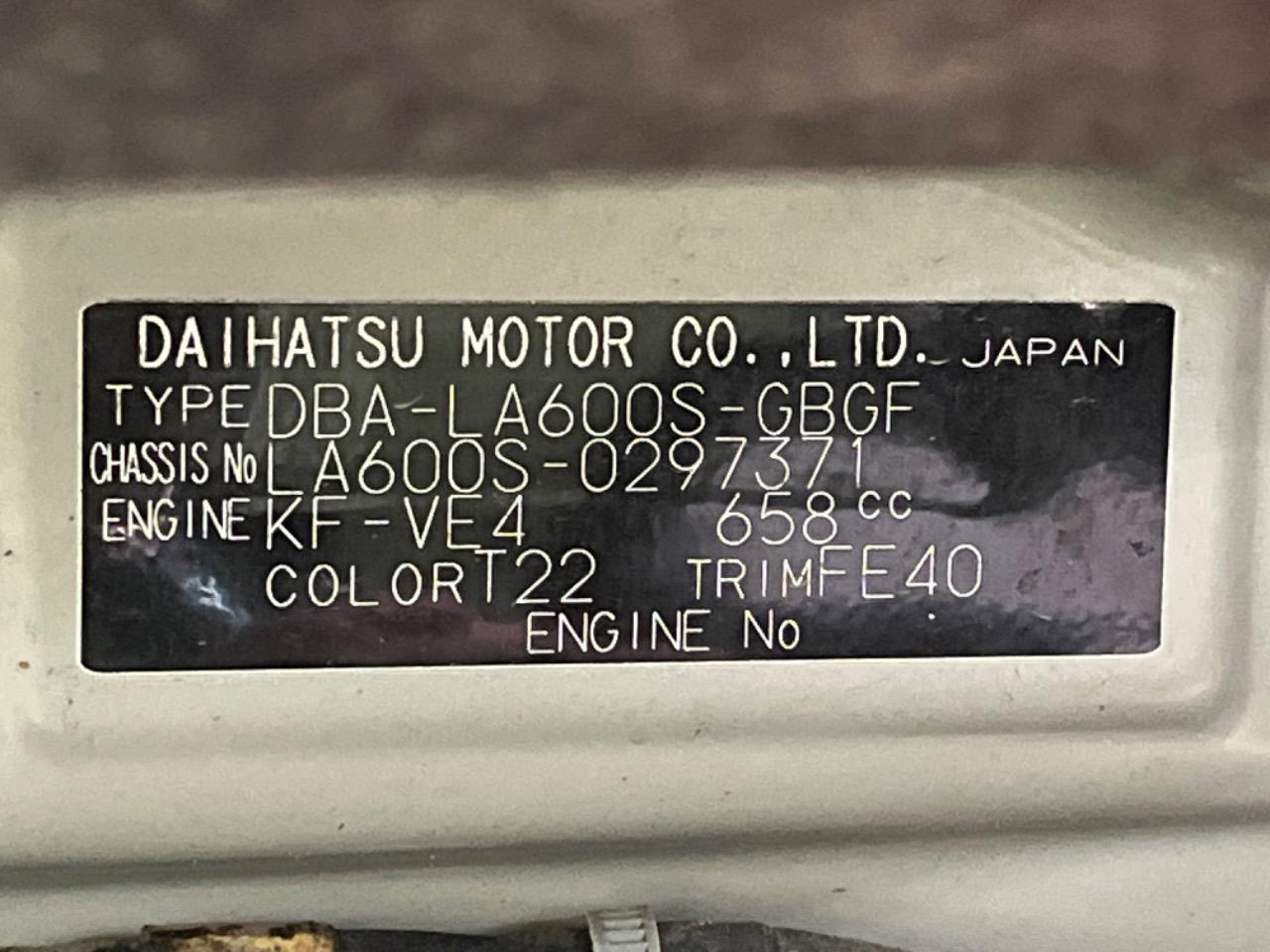 | Chassis No | LA600S-0297371 |