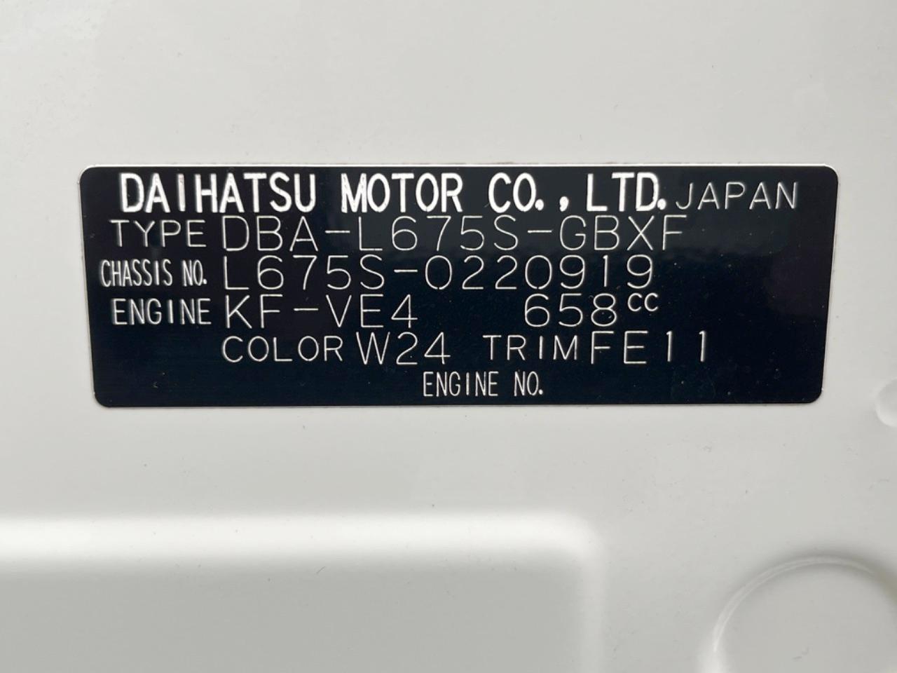 | Chassis No | L675S-0220919 |