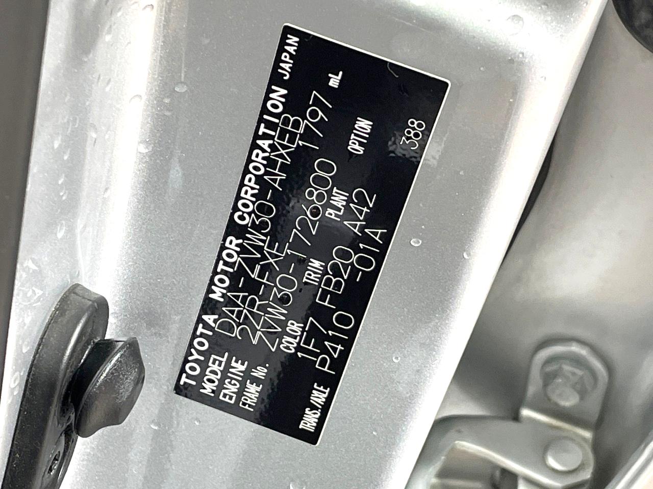 | Chassis No | ZVW30-1726800 |