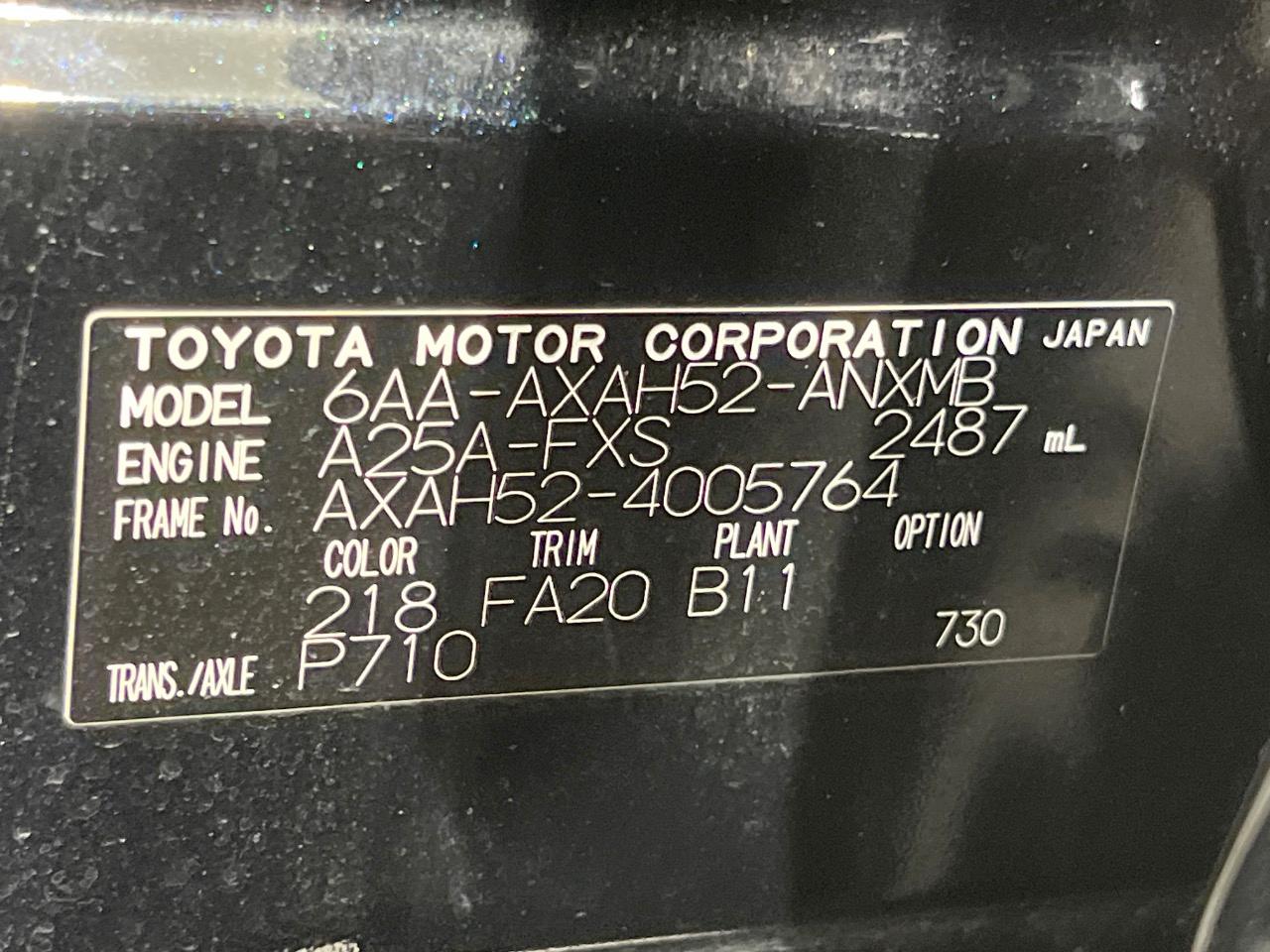 | Chassis No | AXAH52-4005764 |