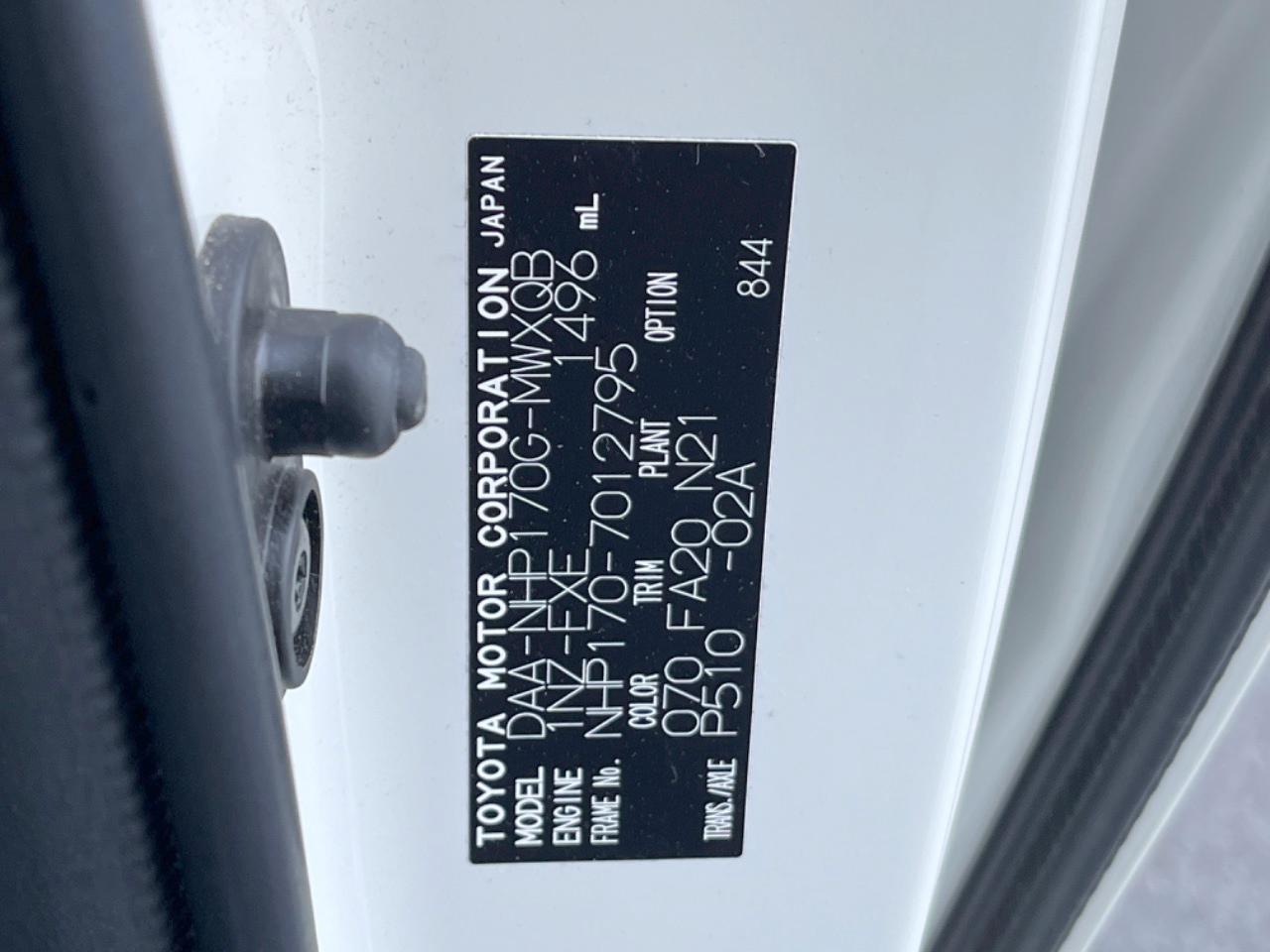 | Chassis No | NHP170-7012795 |