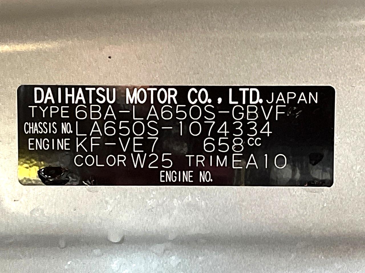 | Chassis No | LA650S-1074334 |