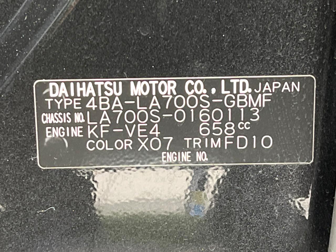 | Chassis No | LA700S-0160113 |