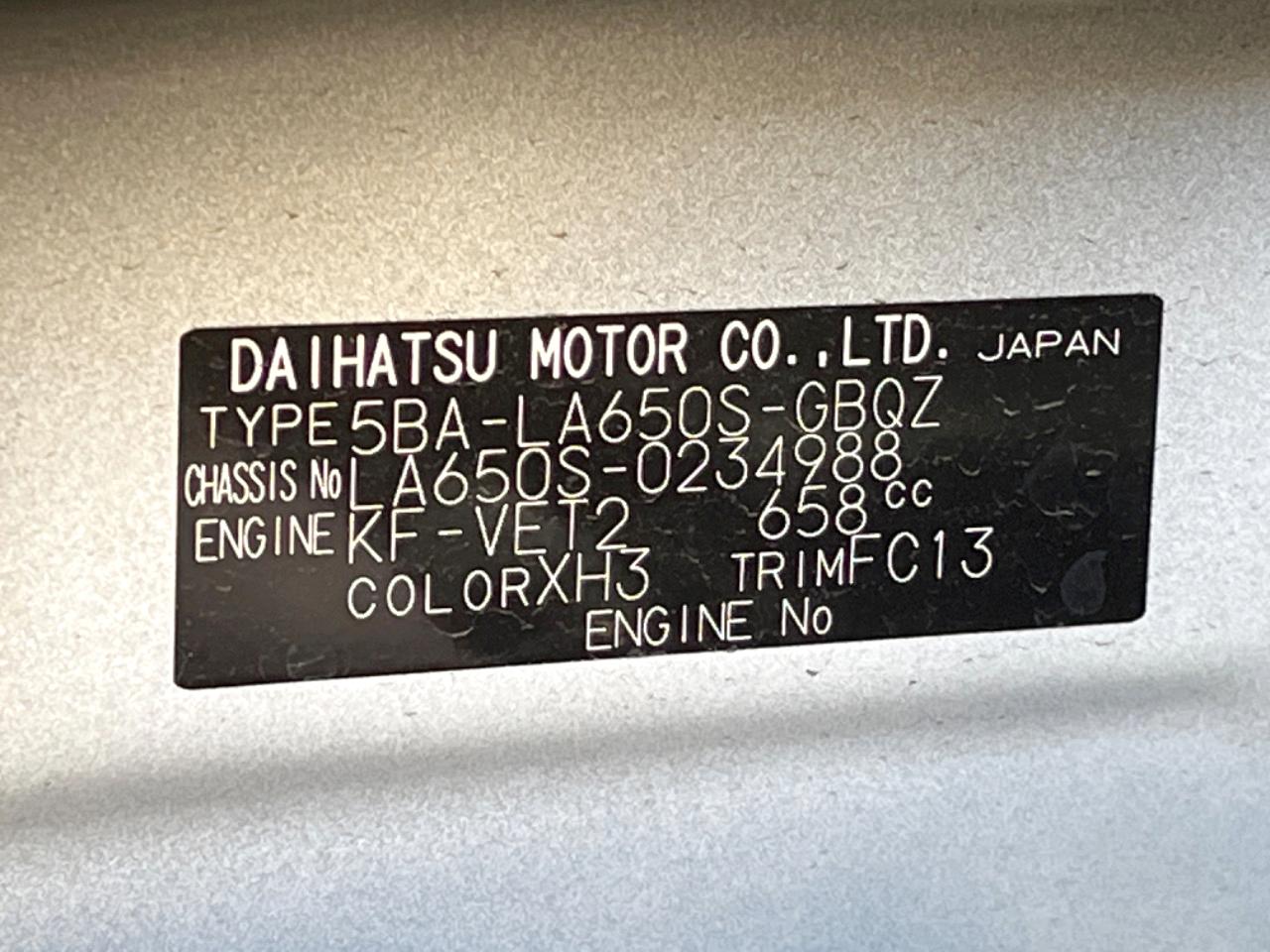 | Chassis No | LA650S-0234988 |