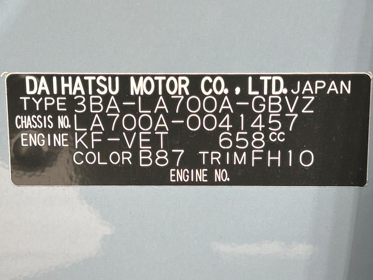| Chassis No | LA700A-0041457 |