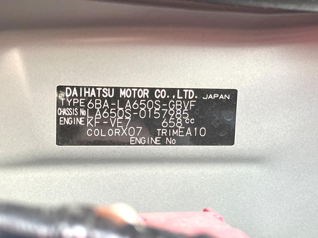 | Chassis No | LA650S-0157985 |