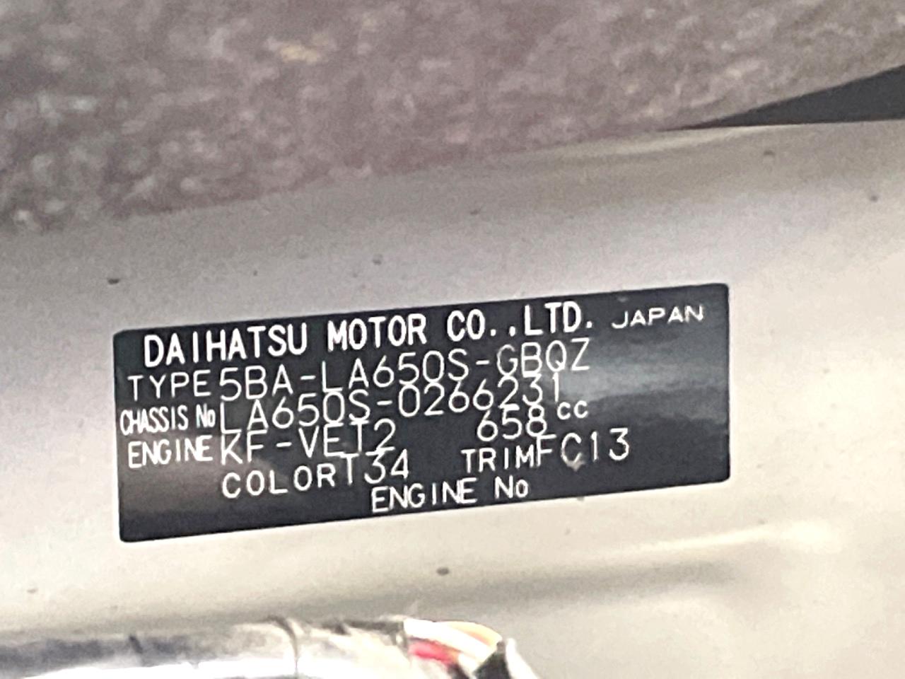 | Chassis No | LA650S-0266231 |