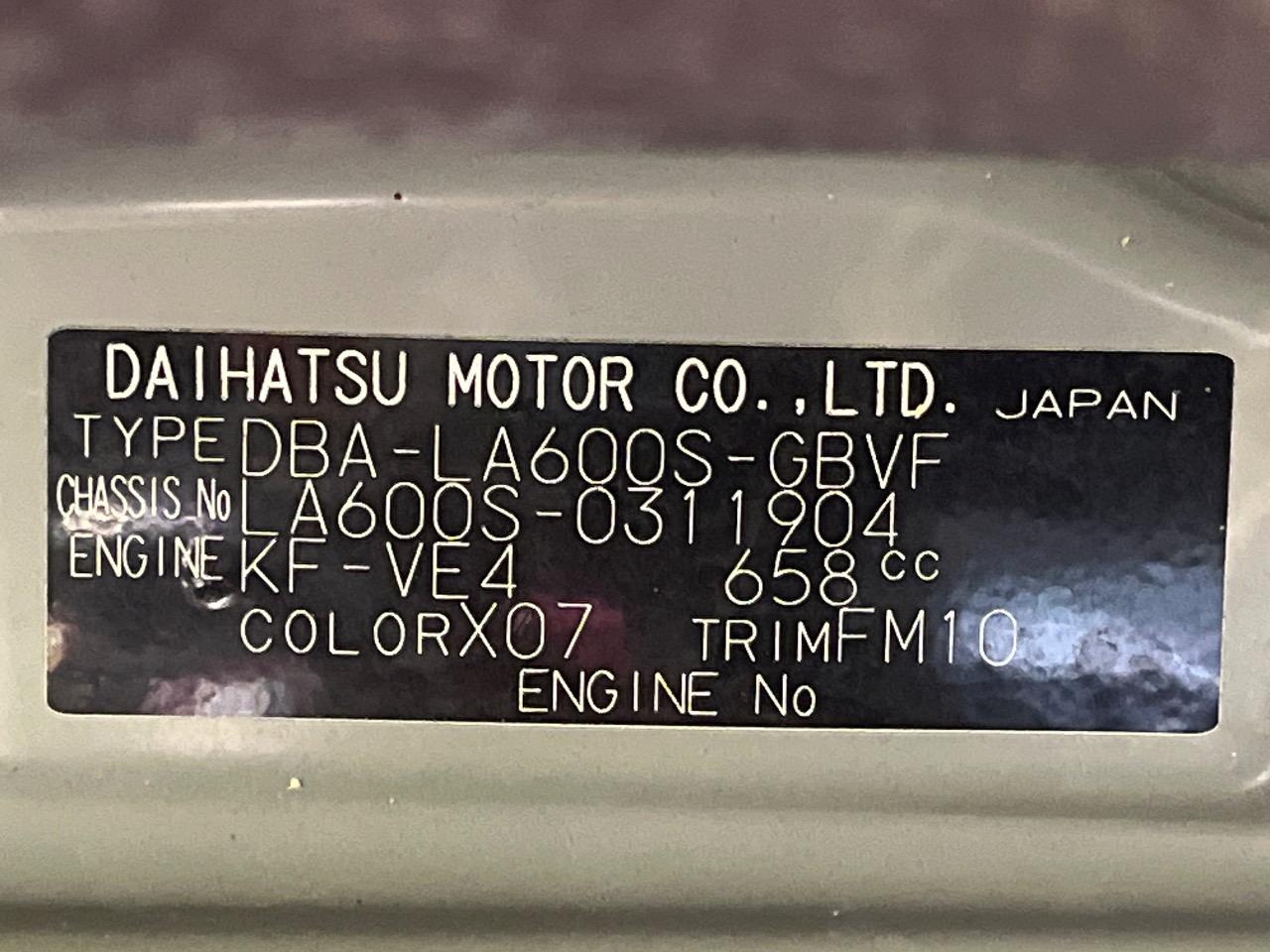 | Chassis No | LA600S-0311904 |