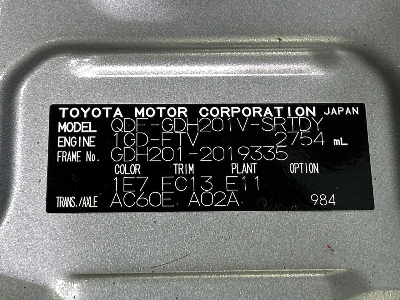 | Chassis No | GDH201-2019335 |