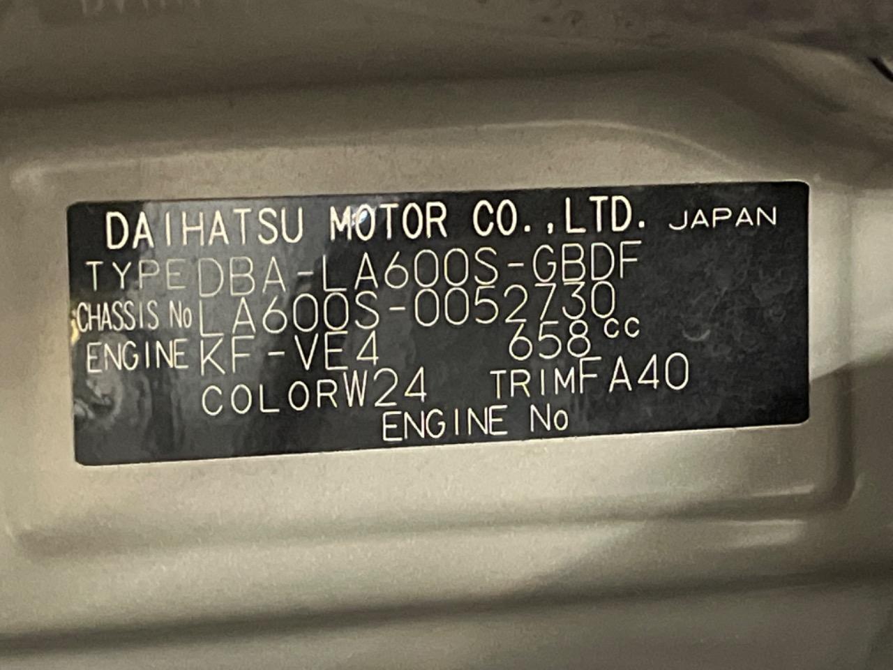 | Chassis No | LA600S-0052730 |