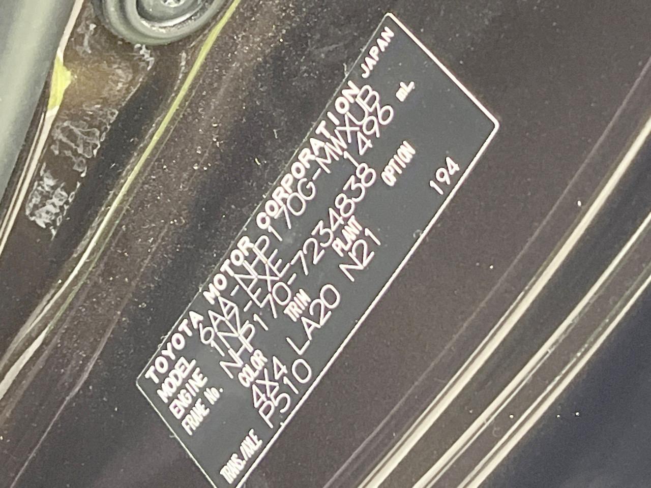 | Chassis No | NHP170-7234838 |