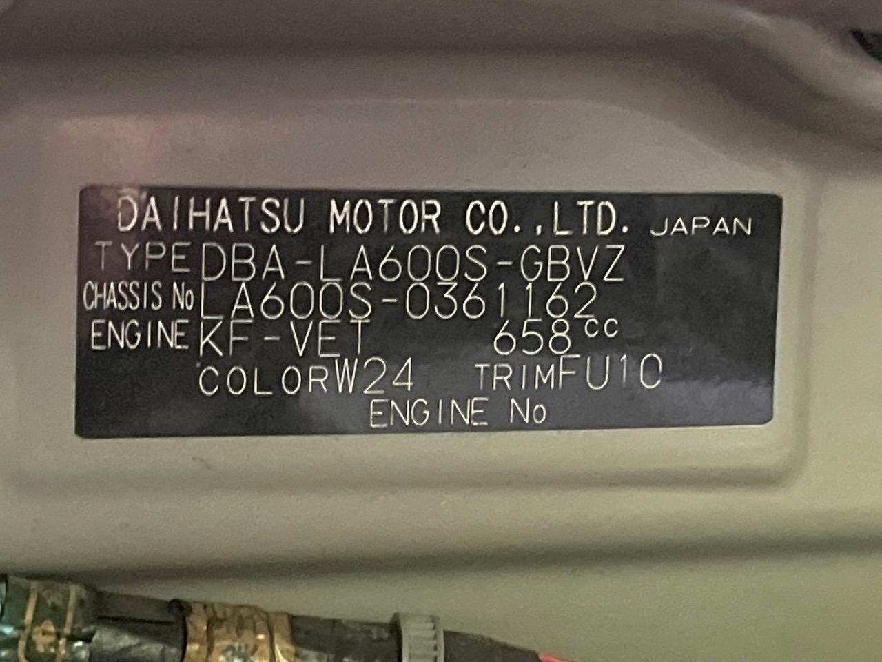 | Chassis No | LA600S-0361162 |