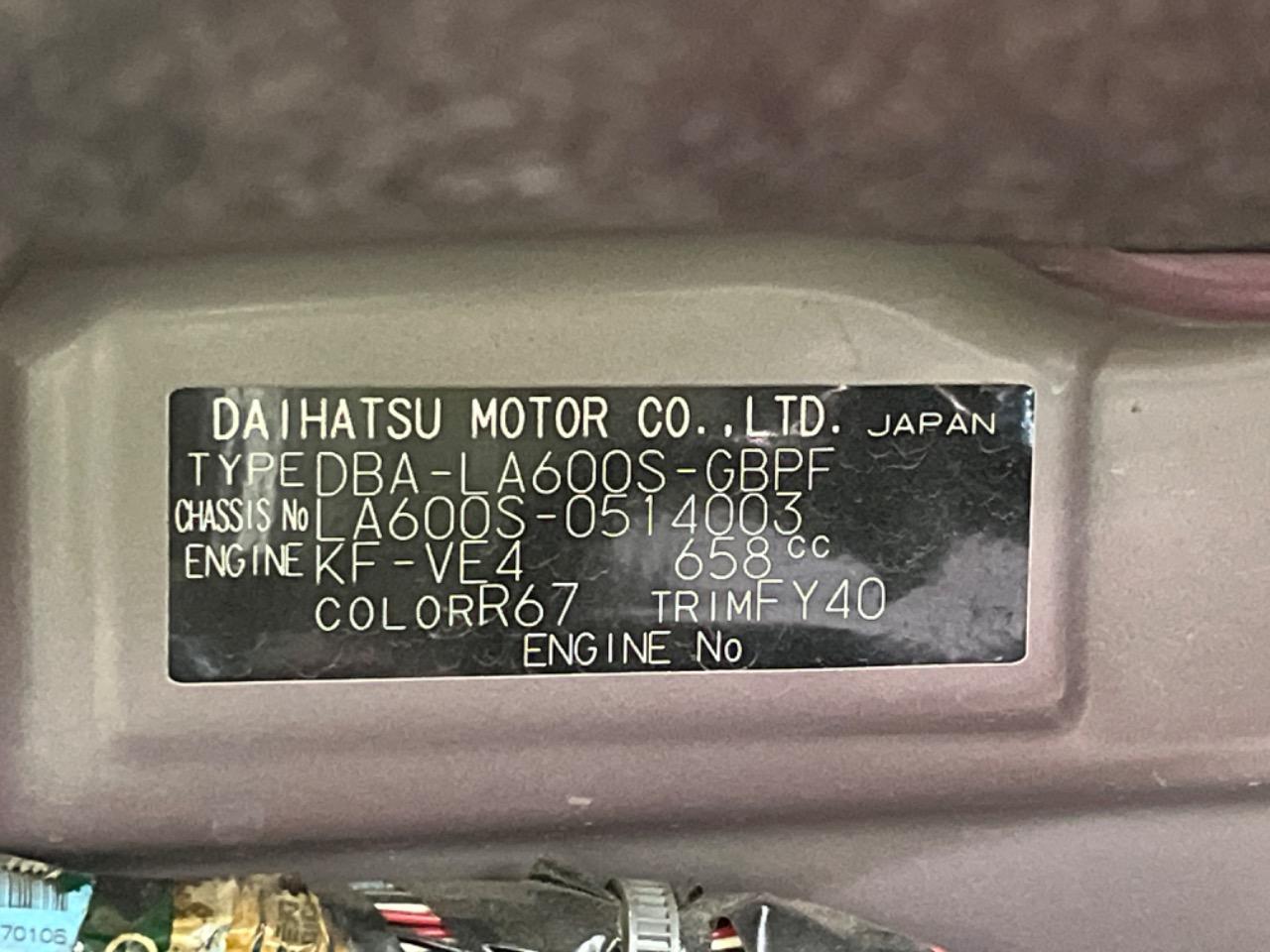 | Chassis No | LA600S-0514003 |