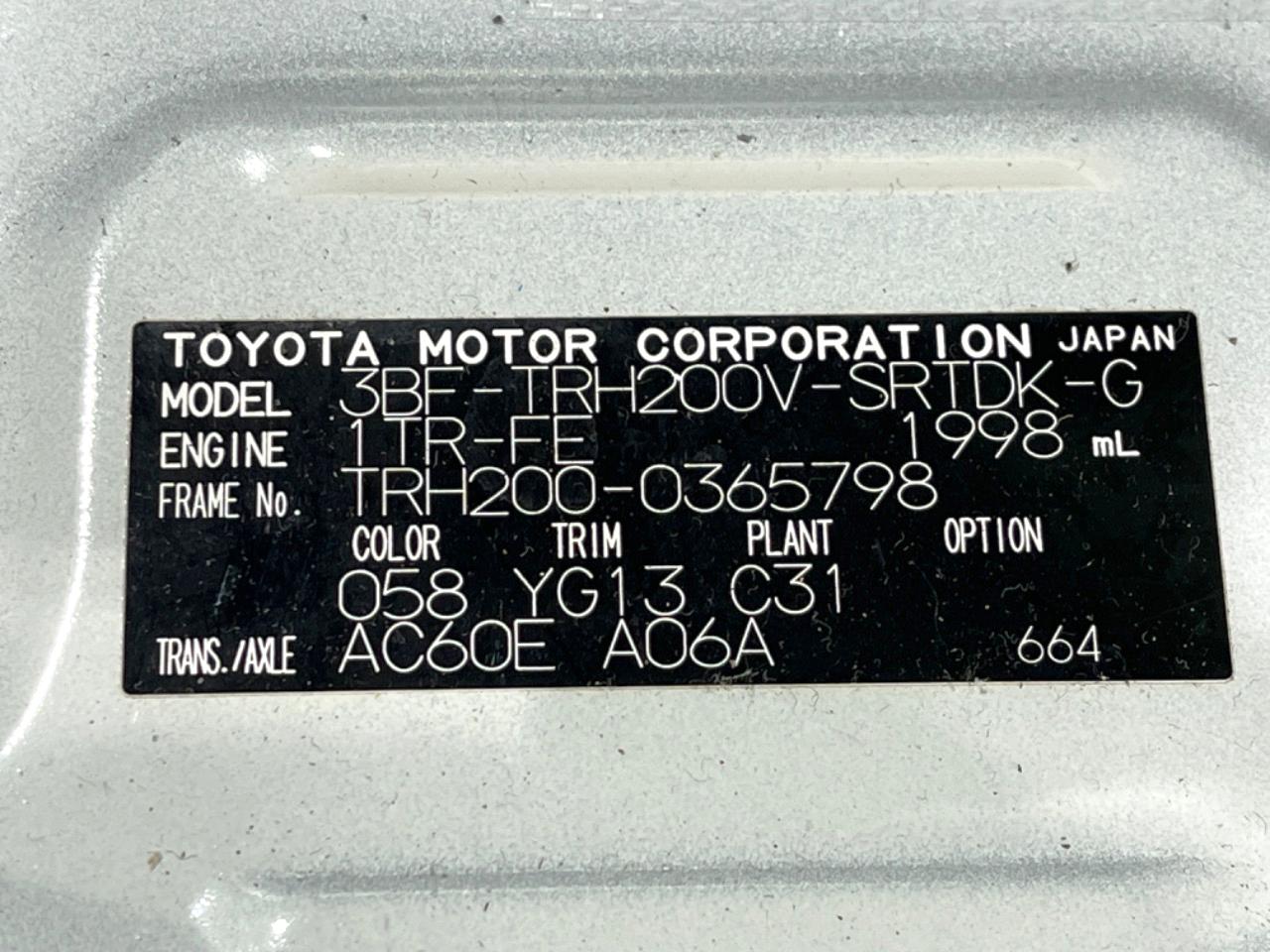 | Chassis No | TRH200-0365798 |