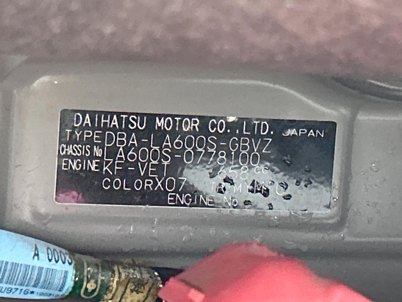 | Chassis No | LA600S-0778100 |