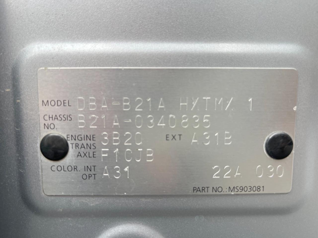 | Chassis No | B21A-0340835 |