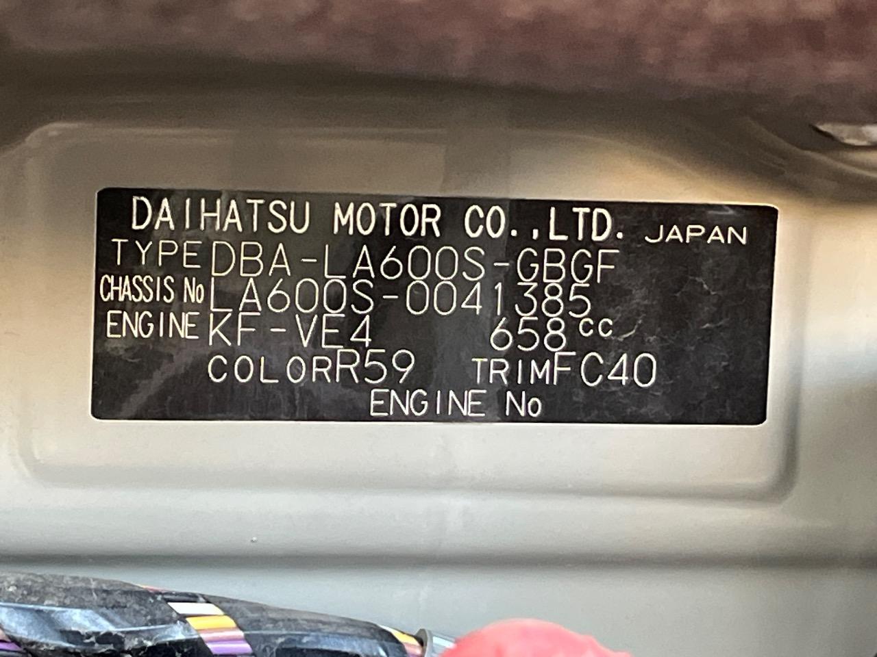 | Chassis No | LA600S-0041385 |