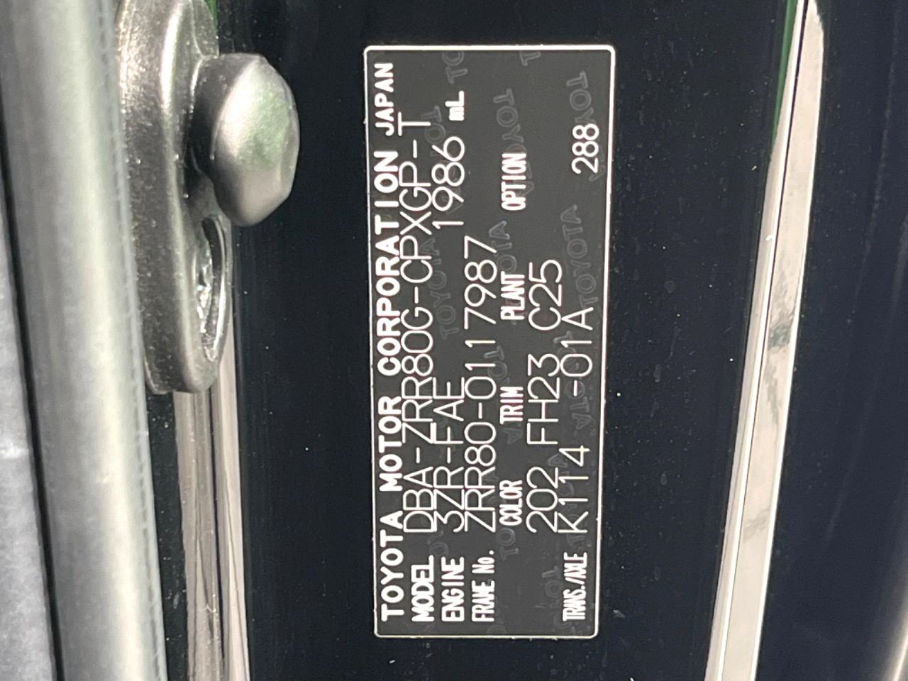 | Chassis No | ZRR80-0117987 |