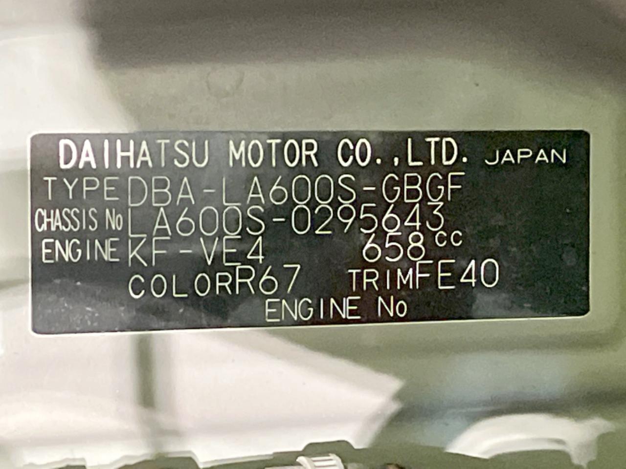 | Chassis No | LA600S-0295643 |