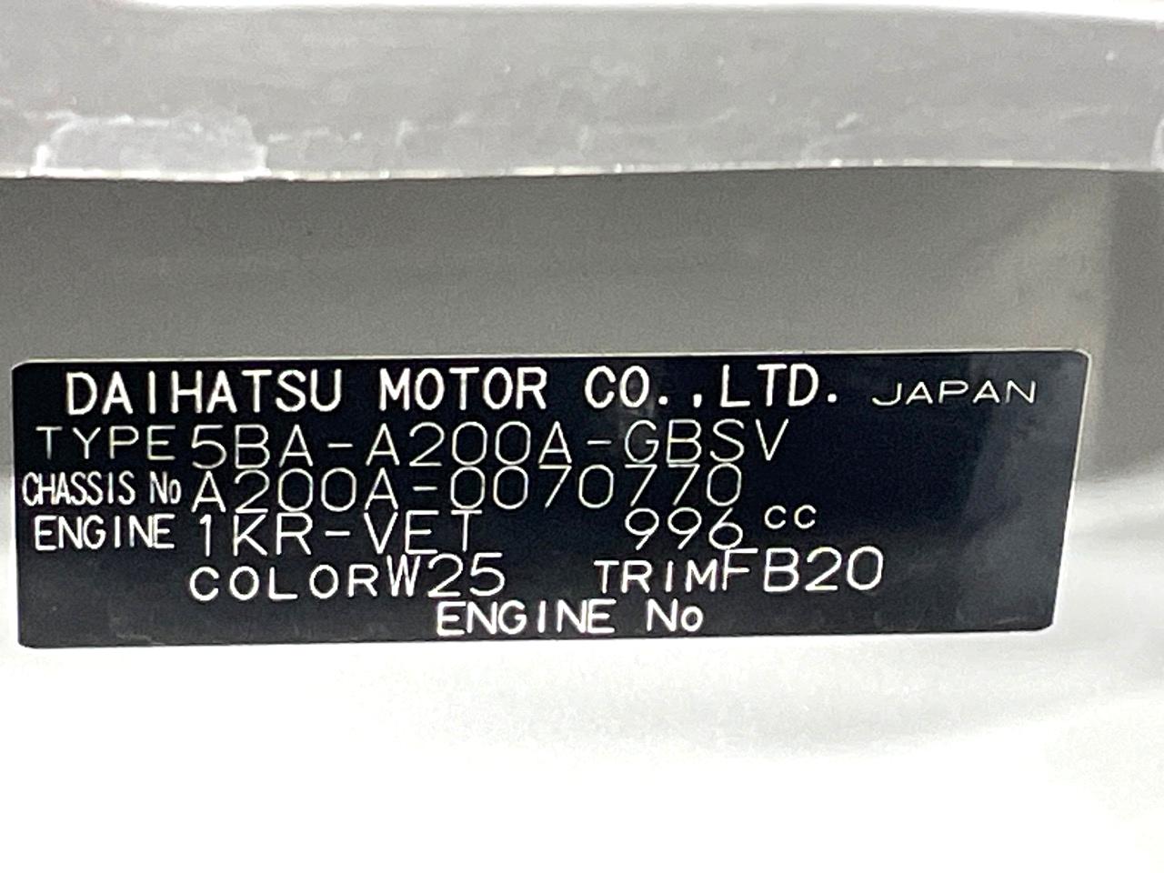 | Chassis No | A200A-0070770 |