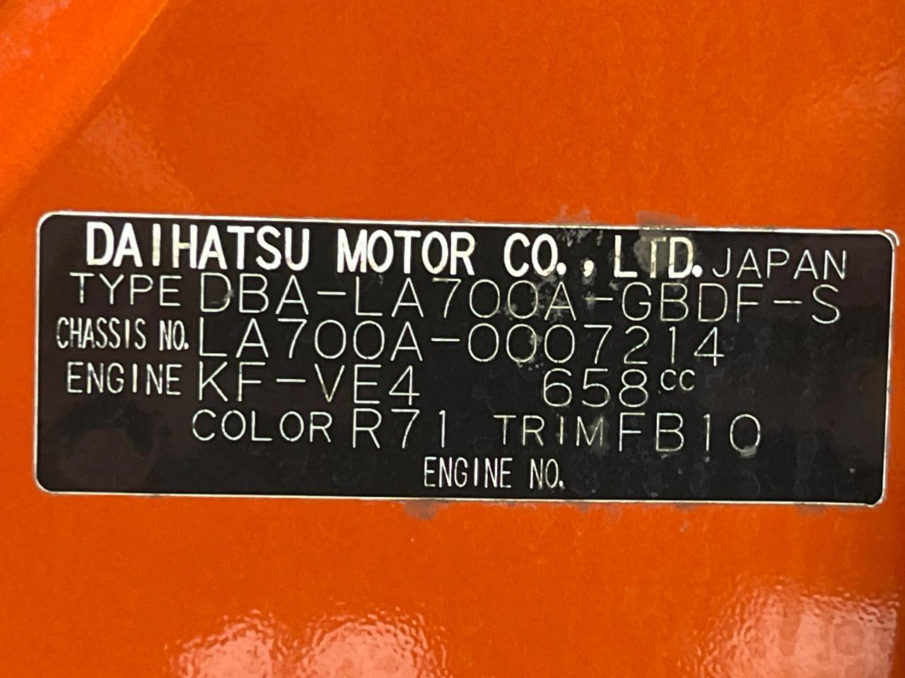 | Chassis No | LA700A-0007214 |