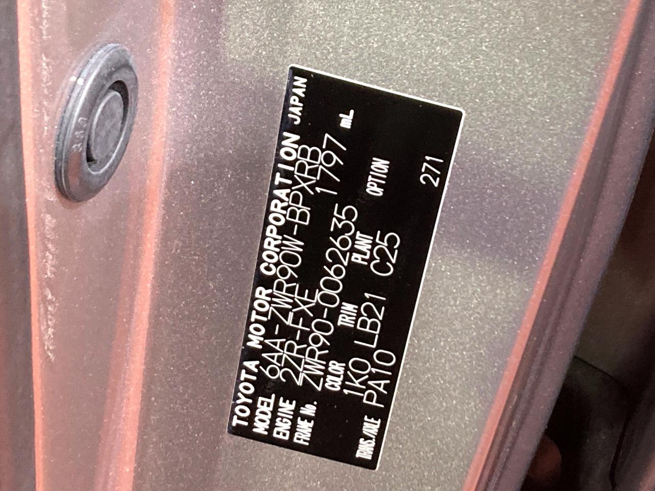 | Chassis No | ZWR90-0062635 |