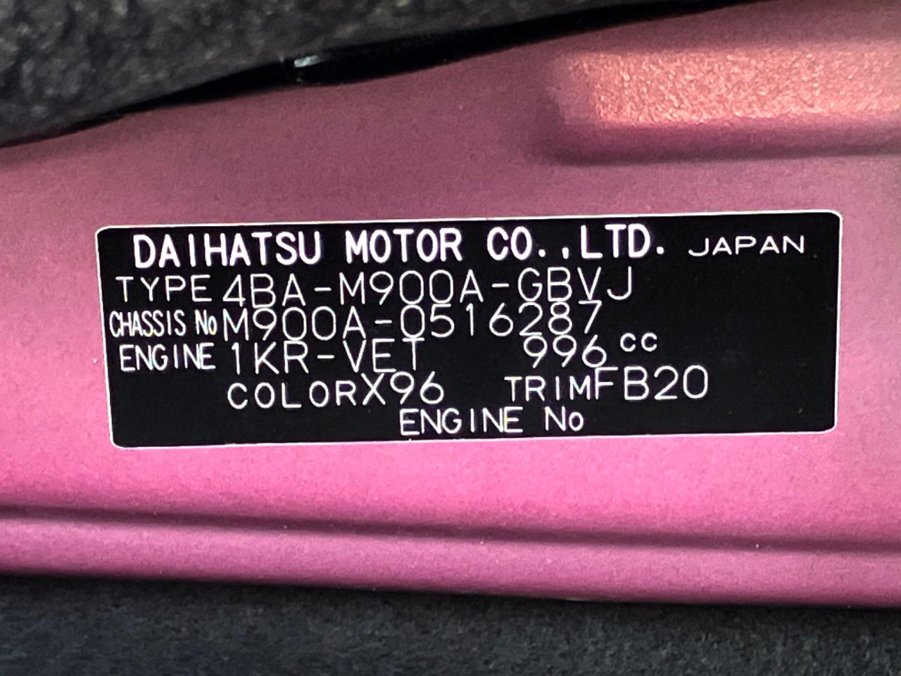 | Chassis No | M900A-0516287 |